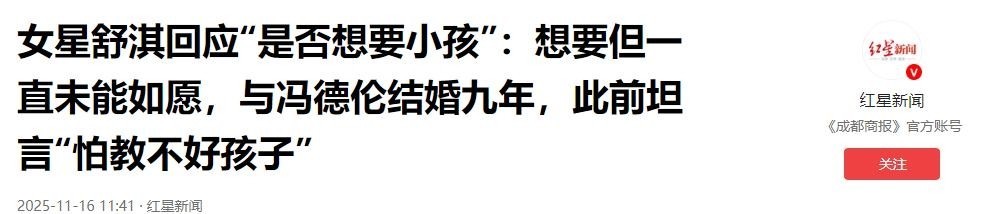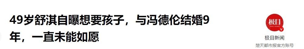 部分参考资料:红星新闻|女星舒淇回应“是否想要小孩”:想要但一直未能如愿,与冯德伦结婚九年,此前坦言“怕教不好孩子” 极目新闻|49岁舒淇自曝想要孩子,与冯德伦结婚9年,一直未能如愿