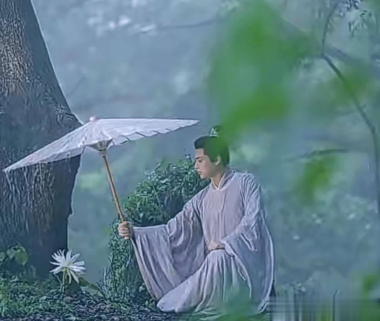 偏偏这个时候裴洛路过,看到这朵孤零零的花,一时间生出了怜悯,为其撑起了一把雨伞遮挡了这场大雨。