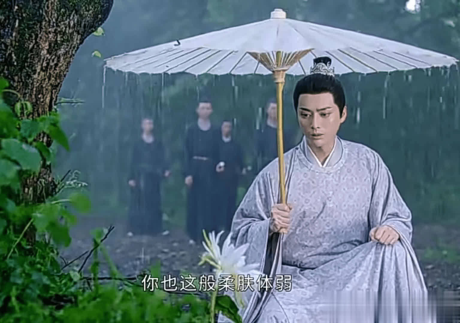 这个时候绛辰便出现了,这一次唤她为裴洛撑起了这把雨伞。